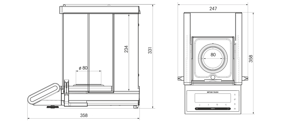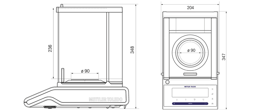 尺寸規(guī)格 MS104S、MS204S、MS304S 分析天平